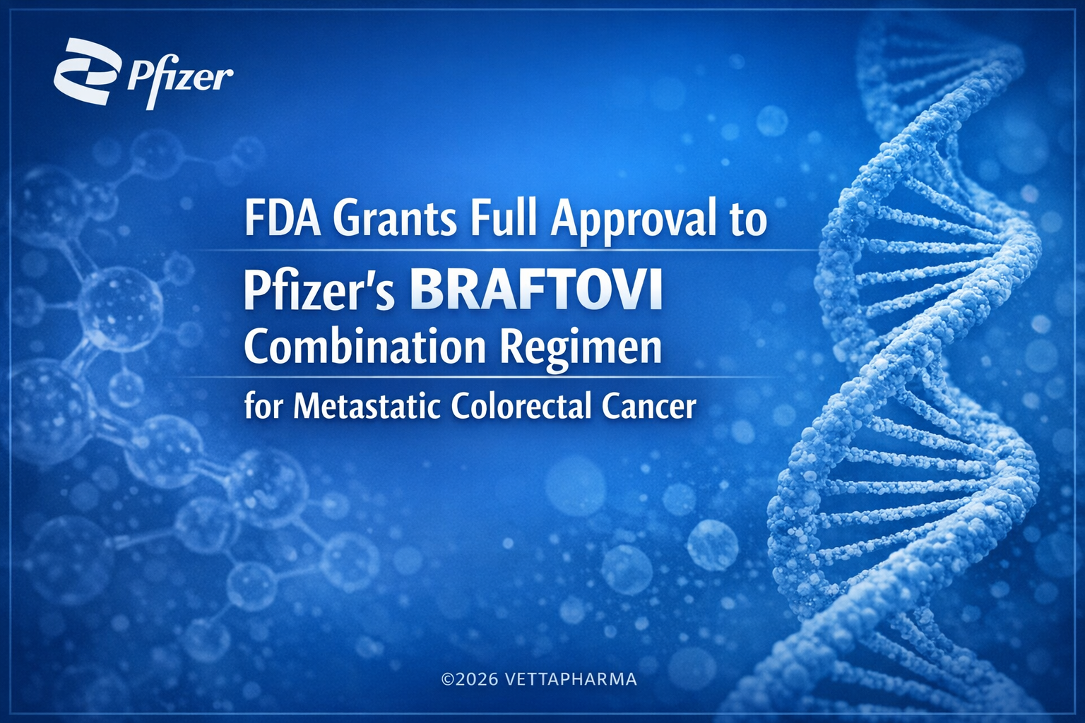 By VETTAPHARMA reporter – Derek Roche: Pfizer Inc. announced that the U.S. Food and Drug Administration (FDA) has granted full approval to BRAFTOVI® (encorafenib) in combination with cetuximab (marketed as ERBITUX®) and fluorouracil-based chemotherapy for the treatment of adult patients with metastatic colorectal cancer (mCRC) with a BRAF V600E mutation, based on results from the global Phase 3 BREAKWATER trial (NCT04607421).